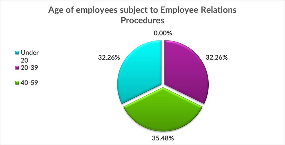 Chart showing that 19.35% of staff who had a Employee Relation Procedure had a Disability/Incapacity.