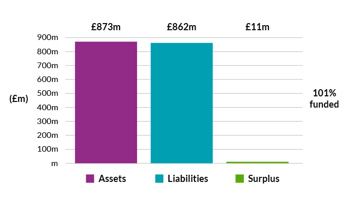 On the basis of the assumptions adopted, the Fund’s assets of £873 million represented 101% of the Fund’s past service liabilities of £862 million (the “Solvency Funding Target”) at the valuation date. The surplus at the valuation was, therefore, £11 million.