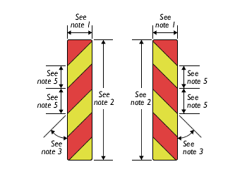 - the angle of each stripe shall be not less than 40 degrees to the vertical nor more than 50 degrees to the vertical