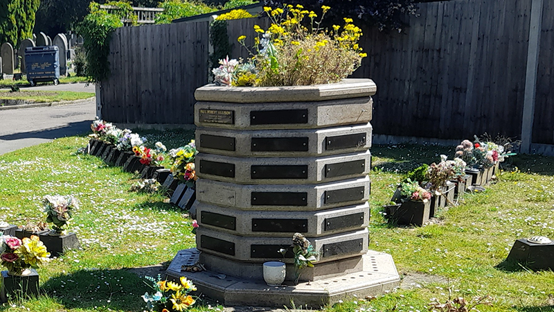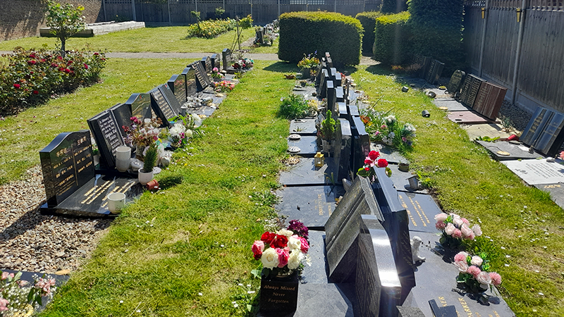 Wall-mounted vases for cut flowers will be supplied by the Council free of charge and will be available for use in the designated commemorative plaque area. No pot plants will be allowed anywhere in the garden. No vases other than those included on or in the memorial will be permitted on the graves, example, no glass jars, china vases, tins or any other receptacles. No borders, including fending, ornaments, chimes or windmills, will be allowed or any other object that will detract from the general ambience of the garden. Cut flowers and wreaths will be permitted on the day of the interment but will be removed by the cemetery staff after approximately 15 working days.