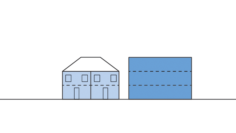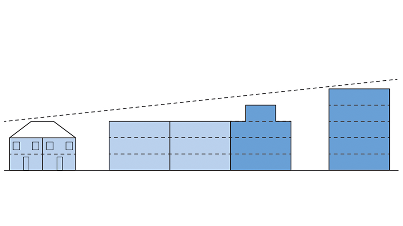 Fig.17 New development forms a gradual transition between scales or character areas. Changes of scale are managed across streets or open spaces.