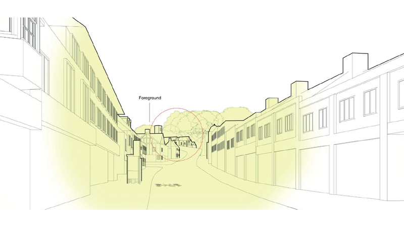1.42 The massing of development should form a gradual transition between different scales or character areas. Changes of scale can be managed across streets and open spaces. Sudden changes in scale and massing between adjoining plots of land are discouraged as they do not contribute towards creating a cohesive place.