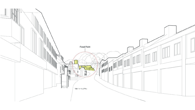 1.45 The building form should respond to analysis gathered for D01. Close referencing of roof forms, roof pitches, datums and massing proportions within new developments can mediate and enhance visual relationships between new and existing buildings.