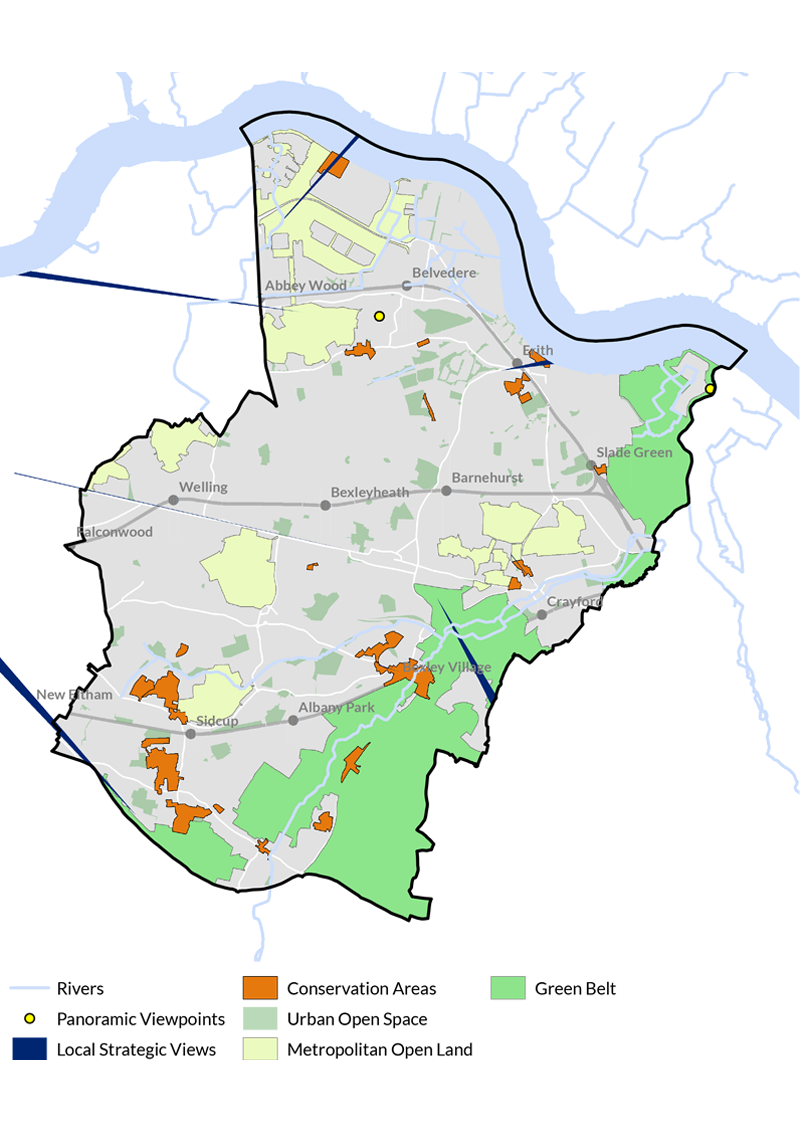 1.71 A relationship with the Borough’s rivers and open spaces is one of the defining characteristics of Bexley. Developments that maximise opportunities to provide and maintain long views, enhance views of vegetation, open spaces and rivers, and provide visual connections to heritage assets from both new and existing homes and public spaces will be encouraged. Applicants can demonstrate this by providing visualisations supporting the design.