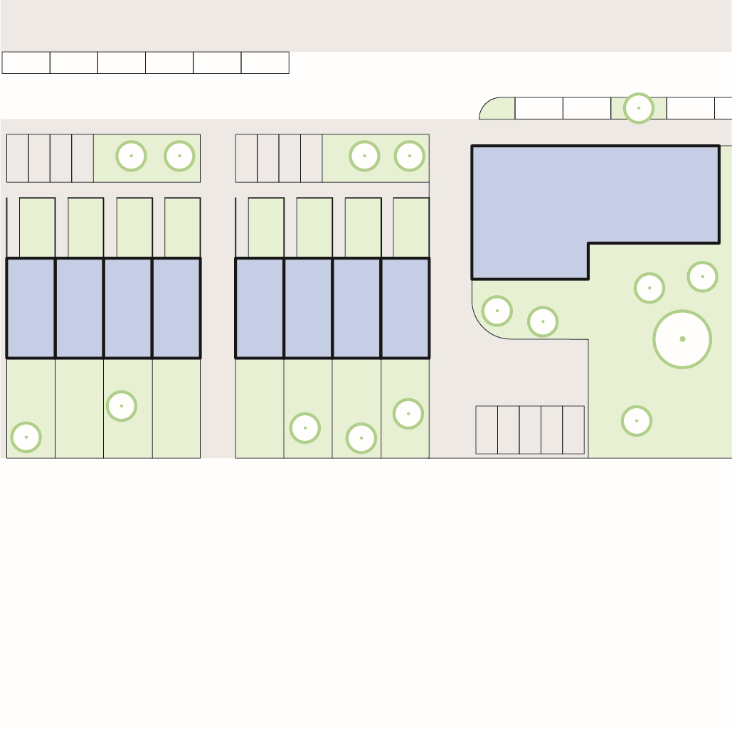 Fig.82 Proposals should use a variety of configurations to accommodate parking and avoid the use of on-plot parking. Landscape elements can be used to break up continuous lines of parking.