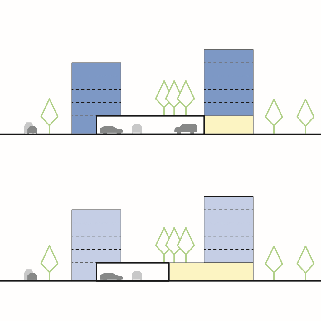 Fig.83 Developments can provide undercroft parking that can be converted into a new use in future. Parking provided along wildlife zones or adjacent to amenity spaces can be converted into other uses if car dependence reduces.
