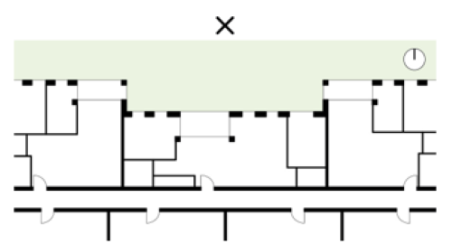 Fig.53 Example of an unacceptable north-facing dwelling. Its position, orientation and layout will make it difficult to ventilate and heat, and it will receive minimal direct light throughout the year