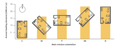 Fig.54 Applicants should consider the building orientation and glazing ratio from early design stages to determine the optimum design to minimise the energy demand of a development.