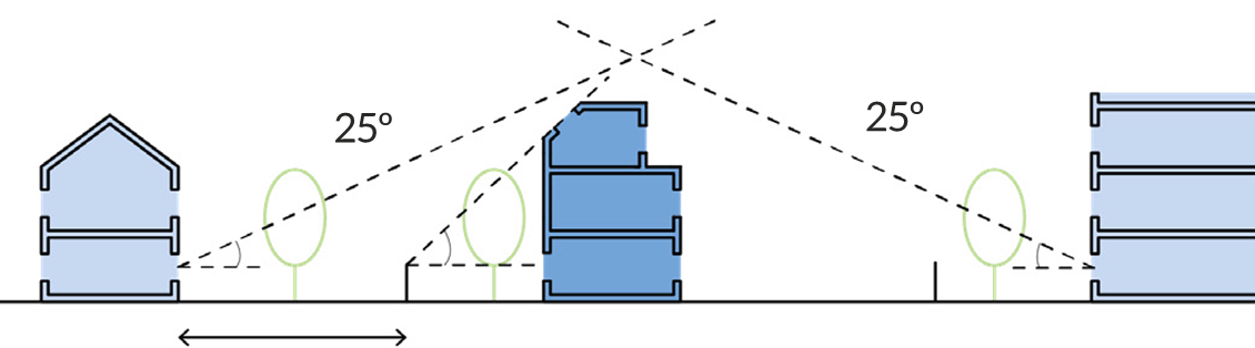 2.37 The 43 degree standard should not be used to generate the building form of the development. Designs with excessive stepping forms to maximise development area will likely not be supported.