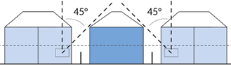 2.46 The 45 degree guidelines shown in b. and c. adjacent protect the access to light of windows in buildings adjacent to new developments. They apply to any new massing above 3m that projects beyond the prevailing building line.