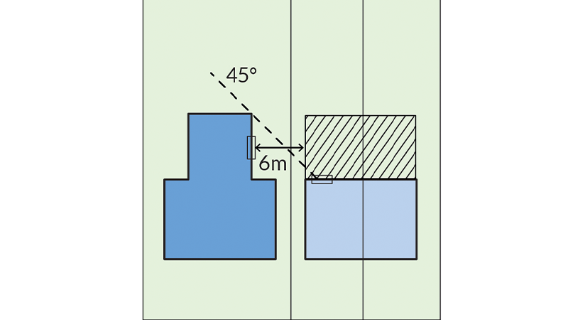 Fig.39 Typical separation distances can be reduced if windows are staggered or outlook is directed away from existing windows.